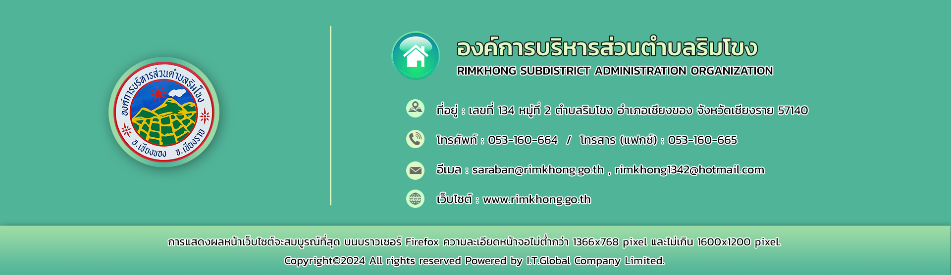 ยินดีต้อนรับเข้าสู่องค์การบริหารส่วนตำบลริมโขง ติดต่อสอบถาม // โทรศัพท์ 053-160-664 โทรสาร 053-160-665 อีเมล rimkhong1342@hotmail.com